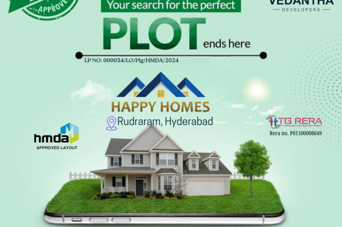 Happy Homes HMDA approval Layout Rudraram. @Premium Villa Plots   Location: Rudraram, Indrakaran, Hyderabad  CLICK ME Lp number : 000034/LO/Plg/HMDA/2024 dt. 20 July 2024 TG Rera No:- P01100008649  SPECIFICATION HIGHLIGHTS : Grand Entrance Arch With security. 100 feet road facing venture, internal road 30,40 feet. Underground Drainage and Sewage System. Underground Network of water supply. Underground … Continue reading Happy Homes @Rudraram, Indrakaran
